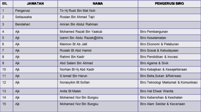 Mesyuarat bulanan yang diadakan pada setiap bagi membincangkan perkara-perkara semasa yang berlaku di kampung. Setiap ketua Biro perlu mengemukakan laporan masing-masing ketika mesyuarat berlangsung. Melalui mesyuarat seperti ini,diharapkan segala masalah yang berlaku dapat diselesaikan dengan segera disamping mengeratkan lagi hubungan […]